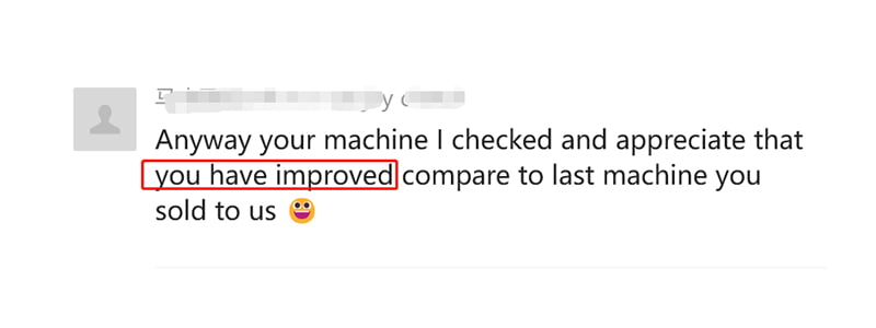 The customer is appreciate that the new machine have improved compare to last machine when he checked them.