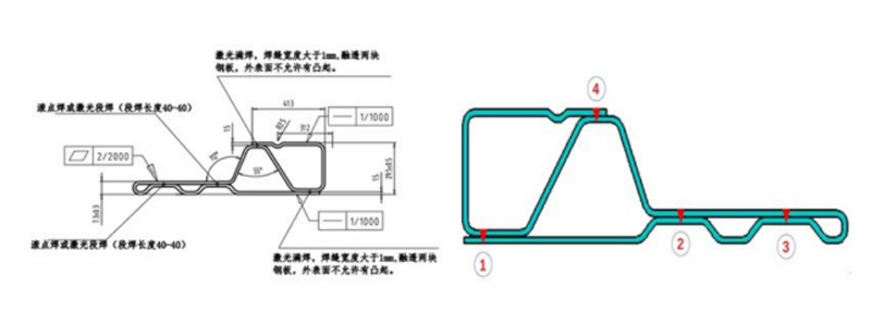 * A gördülőgerenda összeállítási felülete: A felület sima és tiszta, olyan hibák nélkül, mint a gödrök, domború dudorok, hegesztési salak, ütésnyomok, torzulások stb.; a hegesztési kötés sima átmenettel rendelkezik;
